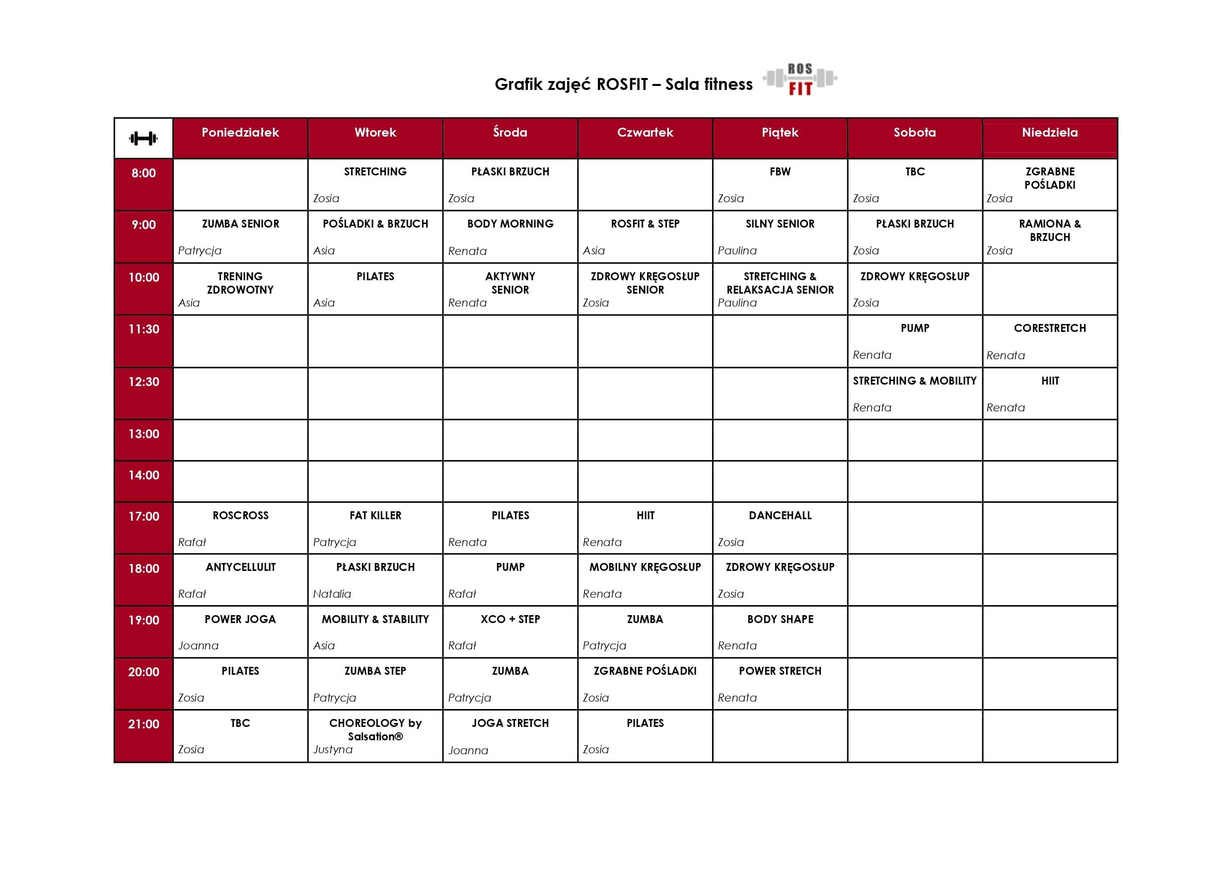 Grafik zajęć